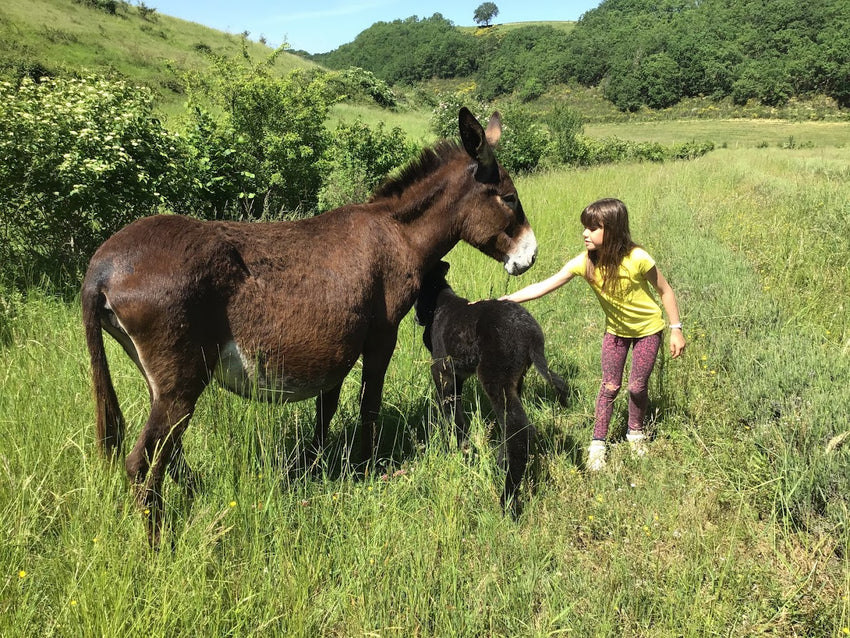Aujourd’hui, leur troupeau se compose d’une trentaine d’ânesses pâturant sur plus de 30 hectares de prairies et de bois (avec chaque année, la naissance d’une dizaine d’ânons à la ferme).
